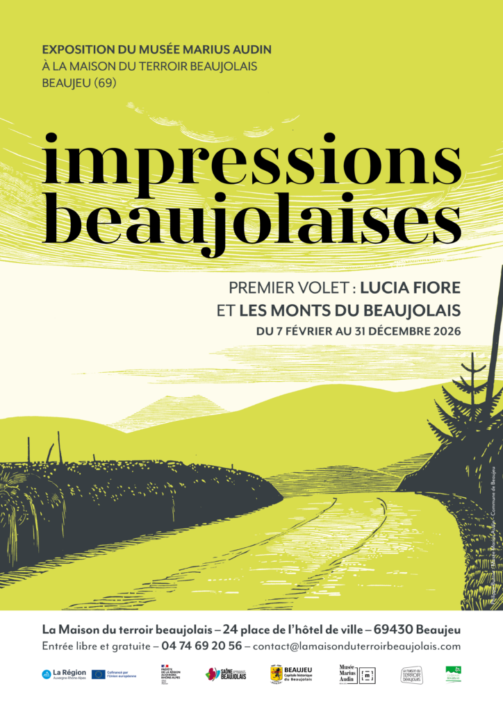 L’exposition Impressions beaujolaises Volet 1 : Lucia Fiore & les Monts du Beaujolais est intégrée à l’espace de visite et est visible en accès libre 7 jours/7 du 7 février au 31 décembre 2026.